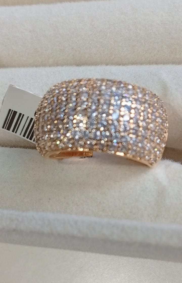 Anel robusto, tipo aliança,folheado a ouro 18K, cravejado com micro zircônias, ARO N. 17.