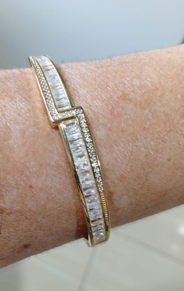 Descrição: Bracelete Leopold, confeccionado no modelo tigre, cravejado com micro zircônias, todo folheado a ouro 18K. Desperte a fera que existe em você e, sinta o poder e a determinação que ele transmite!