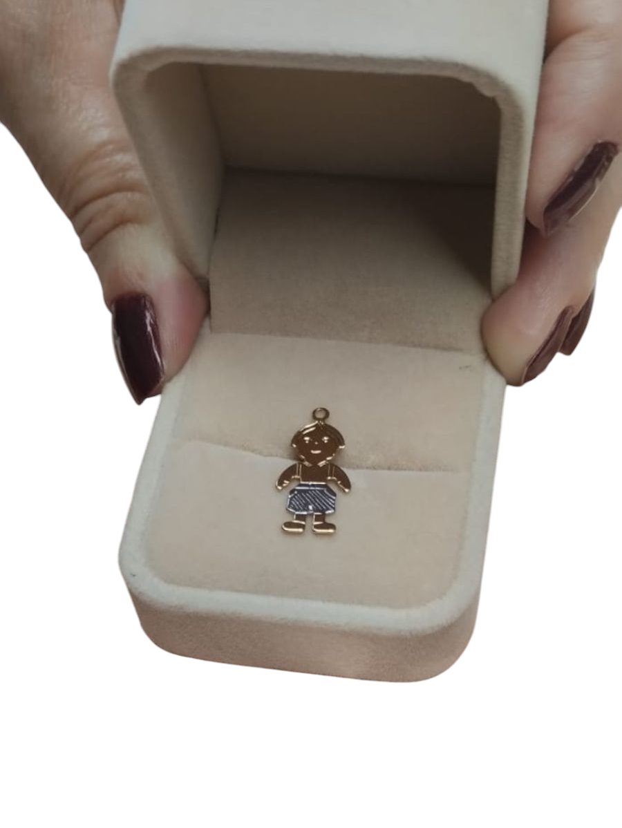 Pingente Filhos, menino, folheado a ouro 18K, com detalhe de folheado a ouro branco na roupa.